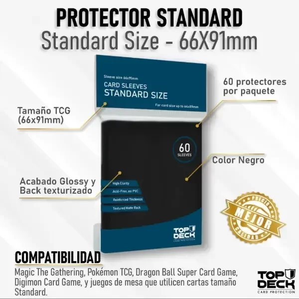 Con 60 protectores por paquete, tendrás la cantidad ideal para proteger tus cartas favoritas. Perfectamente compatibles con juegos de cartas coleccionables como Pokémon, One Piece, Magic, Dragon Ball y otros TCG, así como con cualquier juego de mesa que use cartas de tamaño standard.